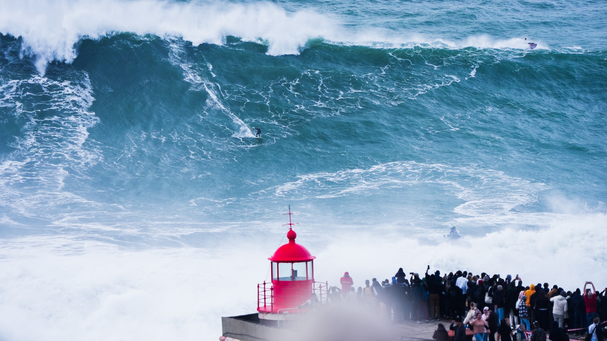 Na Califórnia, encarei Mavericks, uma onda fria, pesada, que também quebra no fundo de pedra. Além disso, é um pico onde a presença de tubarões-brancos e focas é constante. O medo está sempre ali, pairando no ar. Surfei também na Espanha, na Galícia, uma esquerda tubular, muito linda, muito intensa, que quebra no fundo de pedra e entrega sessões memoráveis. Passei ainda pelo México. Mas, sem dúvida, o lugar que mais me marcou foi Nazaré — especialmente no meu primeiro swell gigante. Eu nunca imaginei, na minha vida, que existia uma onda daquele tamanho. Algo que parece um prédio em movimento. Quando vi aquilo pela primeira vez foi impossível não me emocionar. Era felicidade, medo, coragem e humildade tudo ao mesmo tempo. Um mix de sentimentos e adrenalina que não dá para explicar com palavras. Você sente que é pequeno. Você entende o seu lugar. E, ao mesmo tempo, sente que foi escolhido para estar ali.